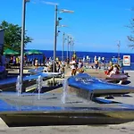 Situated around a 10-minute drive from Motylarnia Zoo, the beachfront Ferienhauser Mit Pool offers guests to enjoy an aqua park, a satellite flat-screen, and a garden. Located just a minute's drive from Park Przyjaciol Pustkowa, the villa provides Wi-Fi and a free private car park.